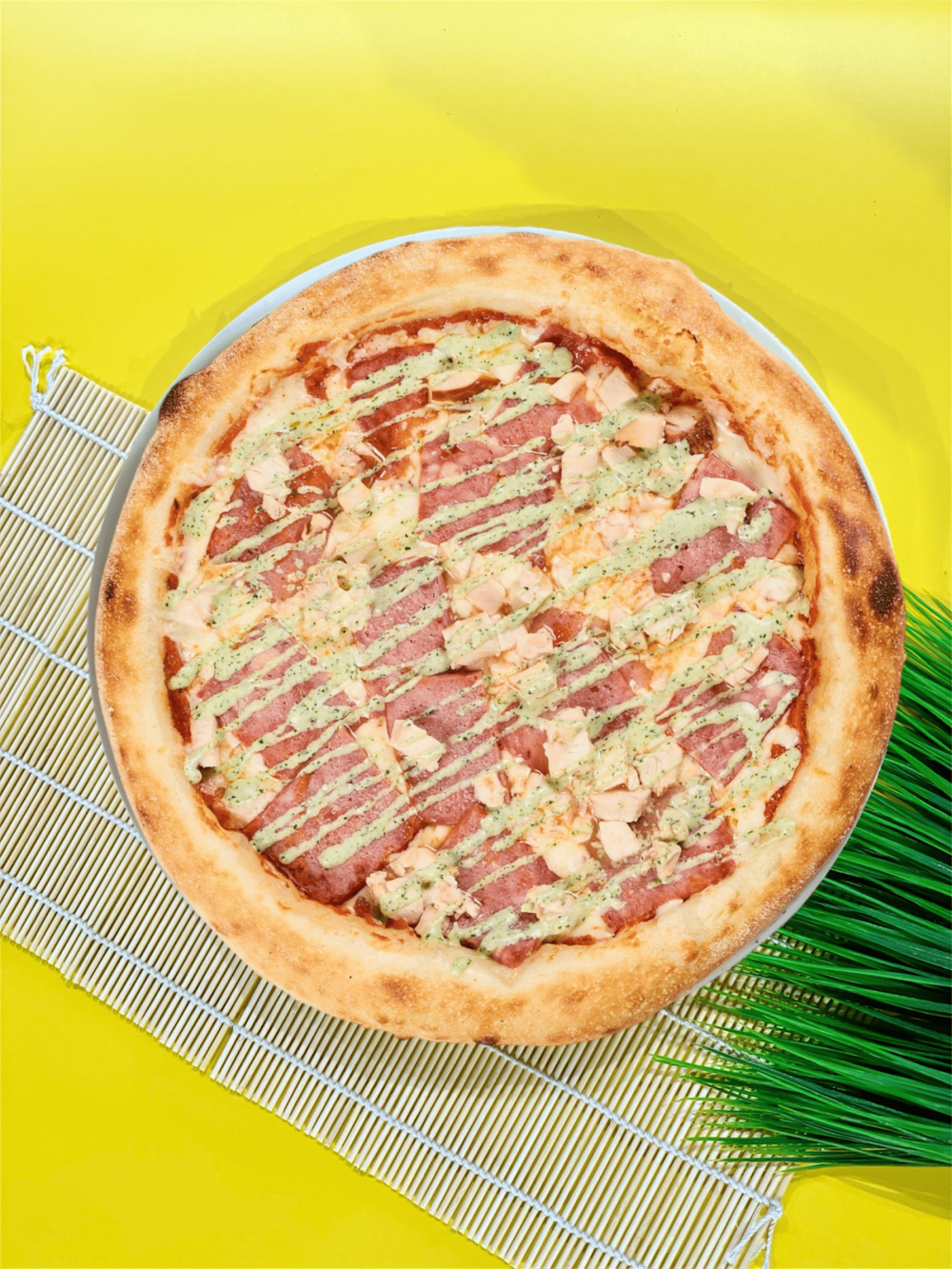 Курица (копч.), бекон, ананас, моцарелла, соус томатный, ранч